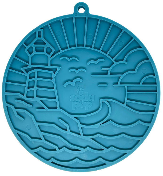 Satisfy your pup's foraging instincts with our Lighthouse eMat Enrichment Lick Mat! Inspired by our founder's coastal roots, this suction-cupped mat offers a challenge for your dog's brain while they lick and sniff out tasty treats. A fun and enriching experience for any dog, especially those with a love for the sea (or food)!